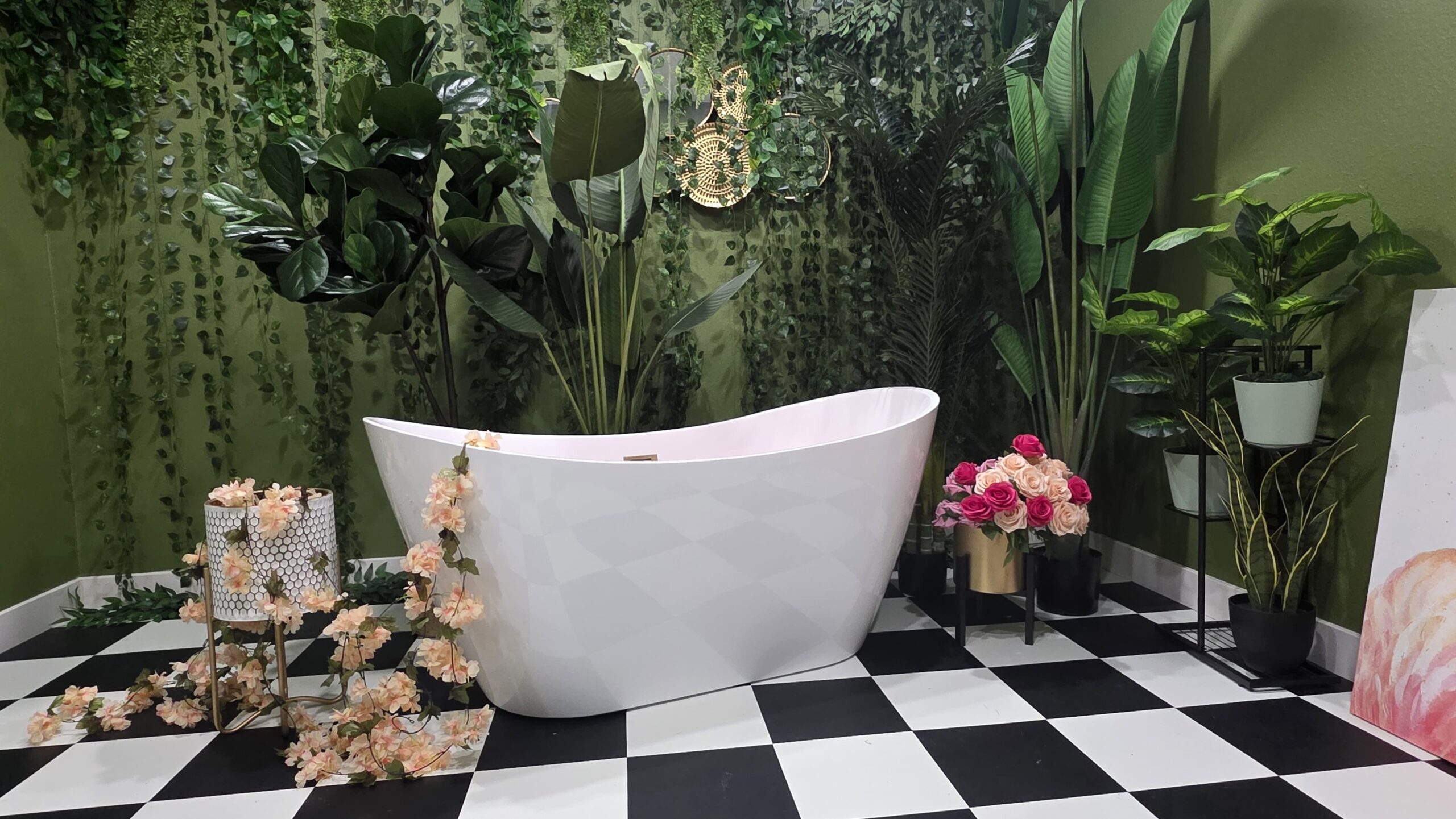 - Step into a lush tropical escape complete with vibrant greenery, striking wall artwork, a stylish lounge chair, a freestanding tub, and unique accent décor that brings the jungle vibe to life-perfect for creating bold, Instagram-worthy photos.
